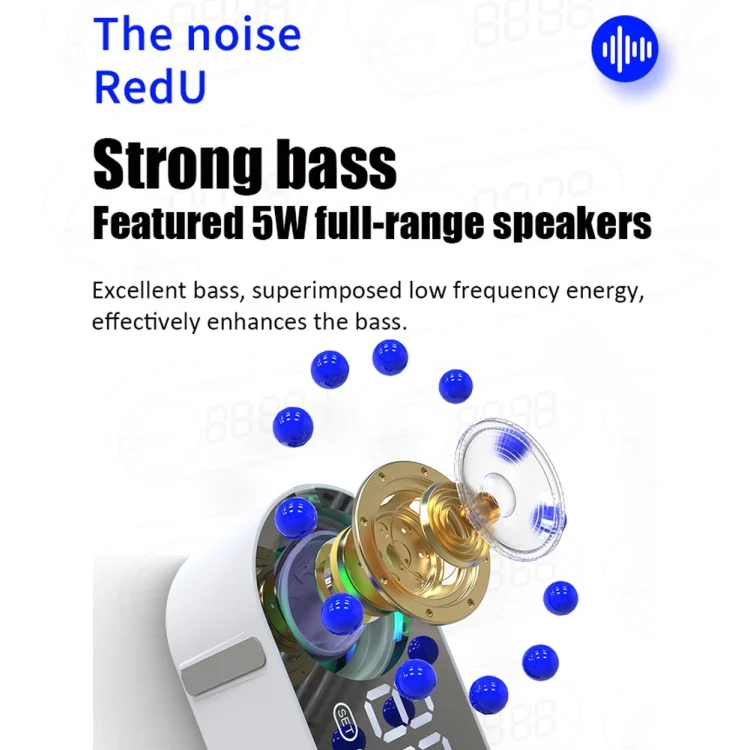 RBT-G30 Mirror Colorful Light Effect Subwoofer Bluetooth Alarm Clock Audio, Spec:, Sensor Version (Black), Sensor Version (White), Sensor Version (Pink), Voice Version (Black), Voice Version (White…