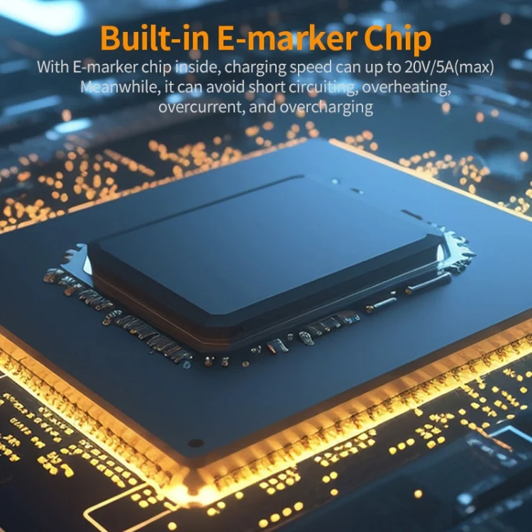 1. 100W Fast Charging & Built-in E-marker Chip: Fully compatible with FCP and QC3.0 protocol, supports up to 5A 20V power output for fast charging. The E-marker Chip automatically adjusts the current and ensures charging your device fast and safely. You can plug this cable into your 100WPD charger and charge your MacBook Pro to 35% in just 30 minutes.