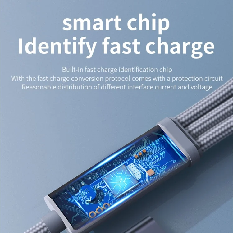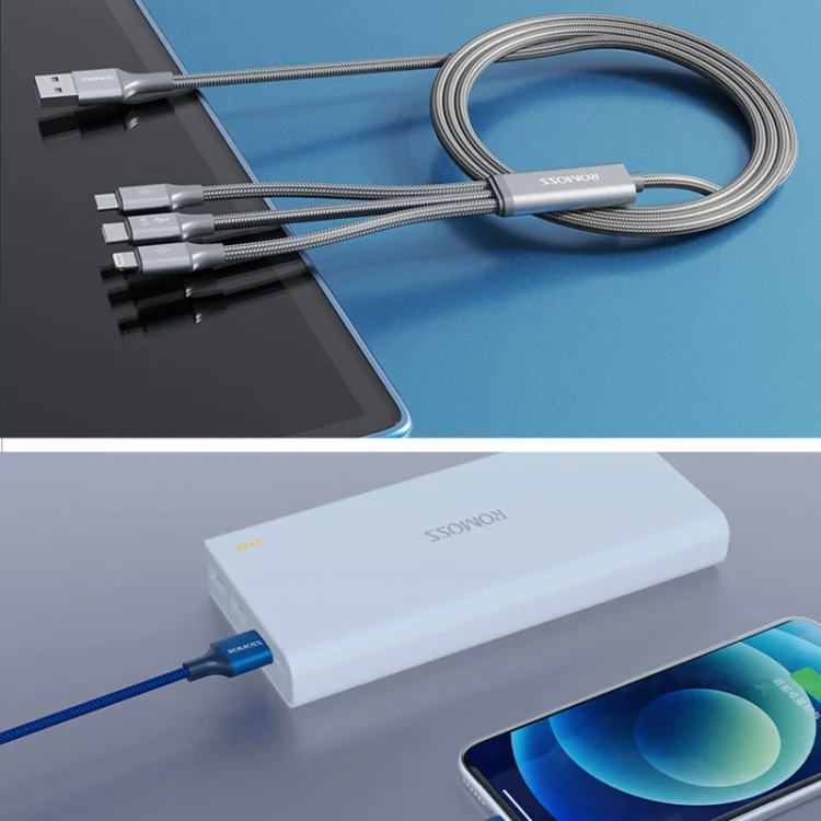 ROMOSS PD100W 3-In-1 Data Cable Type-C/USB-C To 8 Pin & Type-C & Micro Fast Charging Line, PD100W 3-In-1 (Black), PD100W 3-In-1 (Gray)