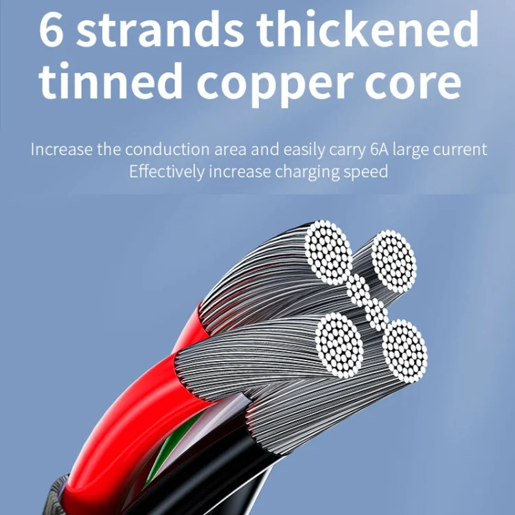 4. 6 thickened tin-plated copper cores increase the conductive area and easily carry 6A large current, effectively increasing the charging speed.