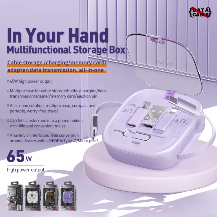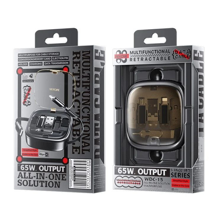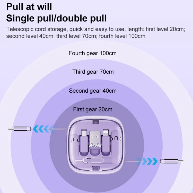 WK WDC-15 Pioneer Series 65W USB-C/Type-C to USB-C/Type-C Multifunctional Telescopic Storage Data Cable, Length: 1m