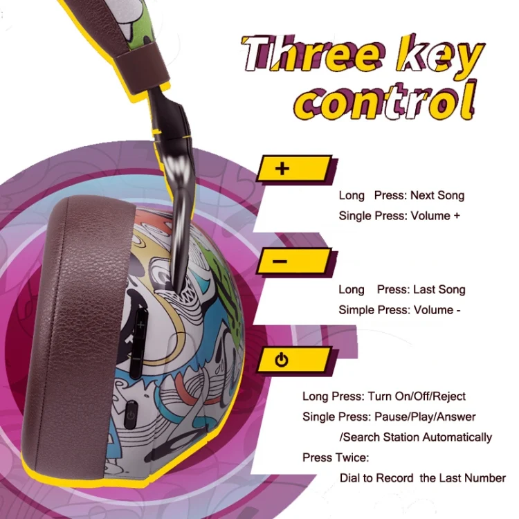 VJ086 Graffiti Headset Wireless Sports Bluetooth Headset Water Transfer Color Print Headset, Support TF, FM