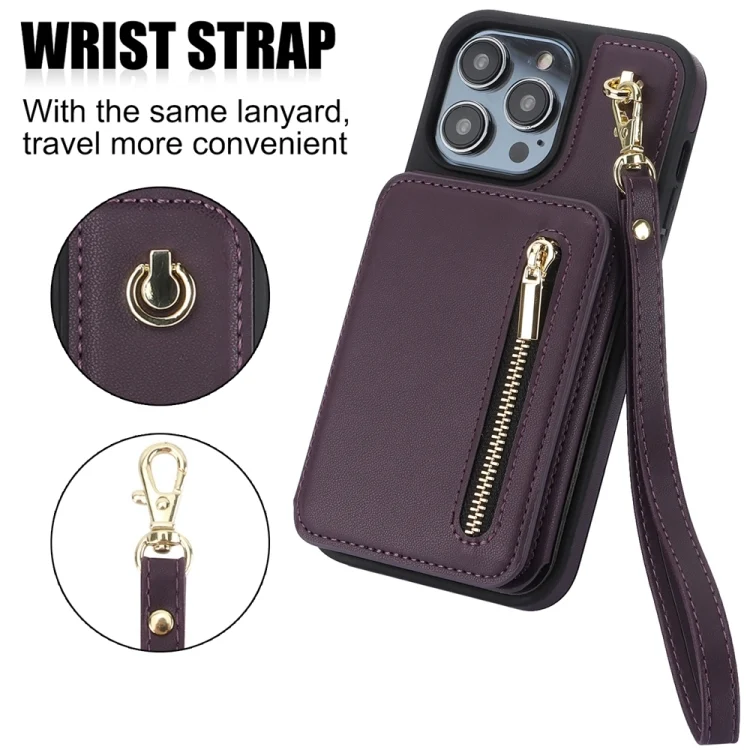 YM006 Skin Feel Zipper Card Bag Phone Case with Dual Lanyard, For iPhone 15 Plus, For iPhone 15