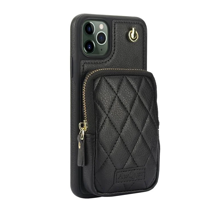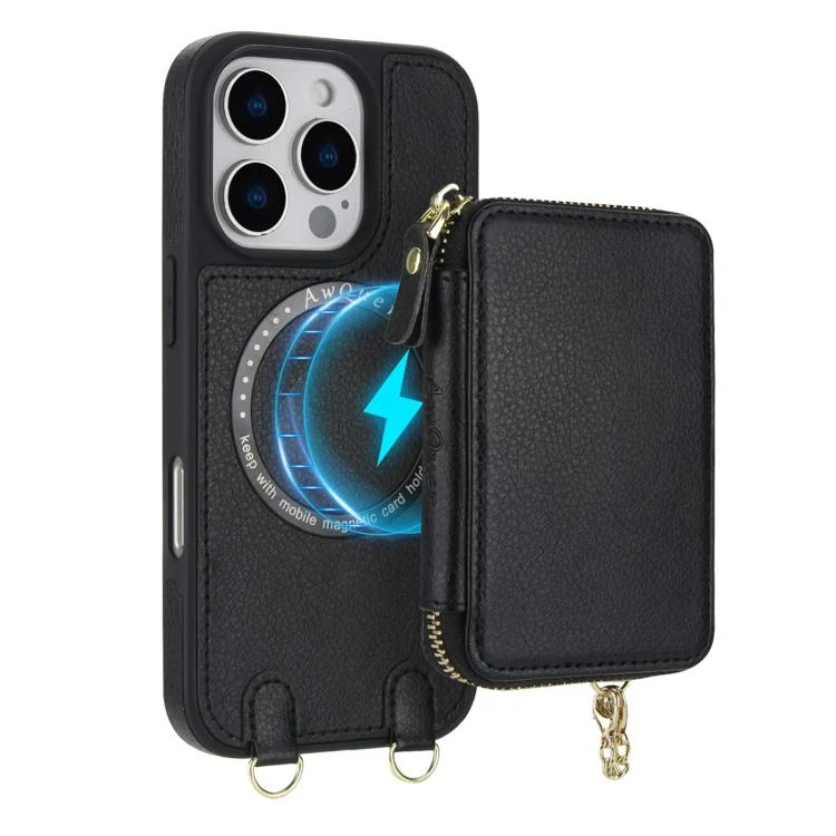 AwQuer Crossbody Zipper Wallet Bag Litchi Leather Phone Case, For iPhone 14 Plus, For iPhone 14 / 13