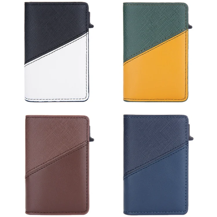 Baellerry RFID Anti-theft Aluminum Box Leather Wallet Side Push Contrasting Antimagnetic Card Holder