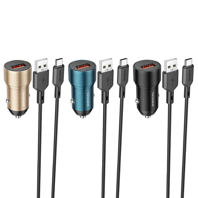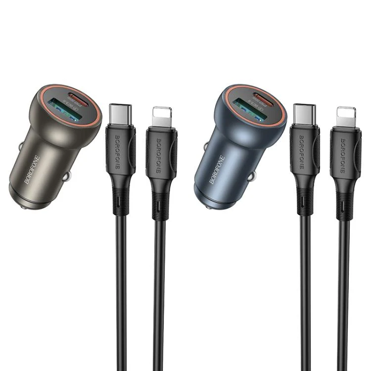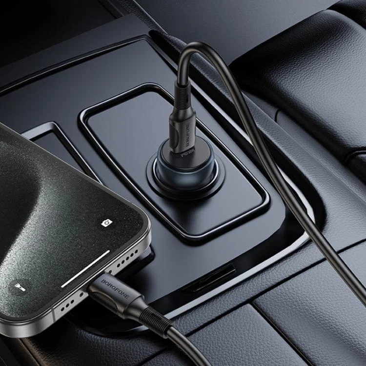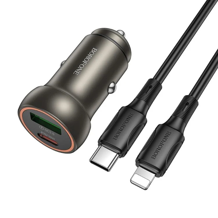 BOROFONE BZ34A Cloud PD20W Type-C Car Fast Charger Set, with 1m Type-C to 8 Pin Cable – Qty: 5 Units