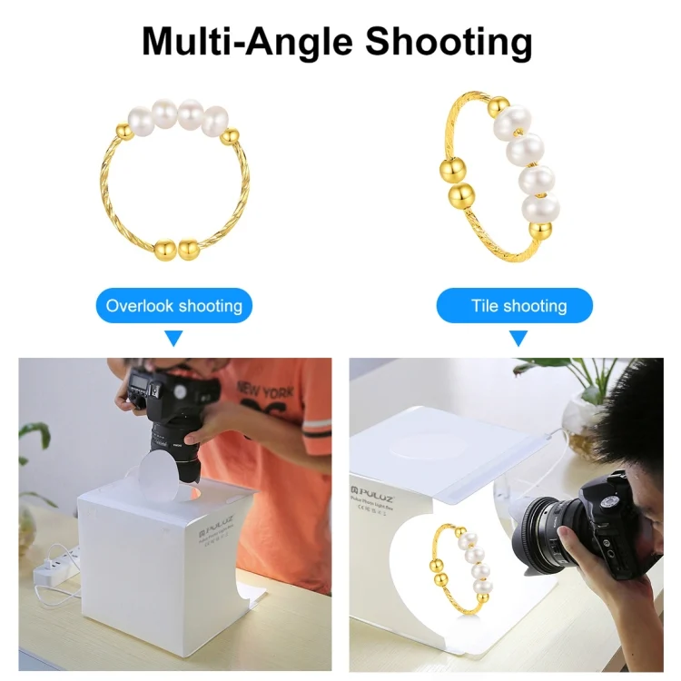 PULUZ 20cm Folding Portable 550LM Light Photo Lighting Studio Shooting Tent Box Kit with 2 Colors Backdrops (Black, White), Unfold Size: 24cm x 23cm x 23cm