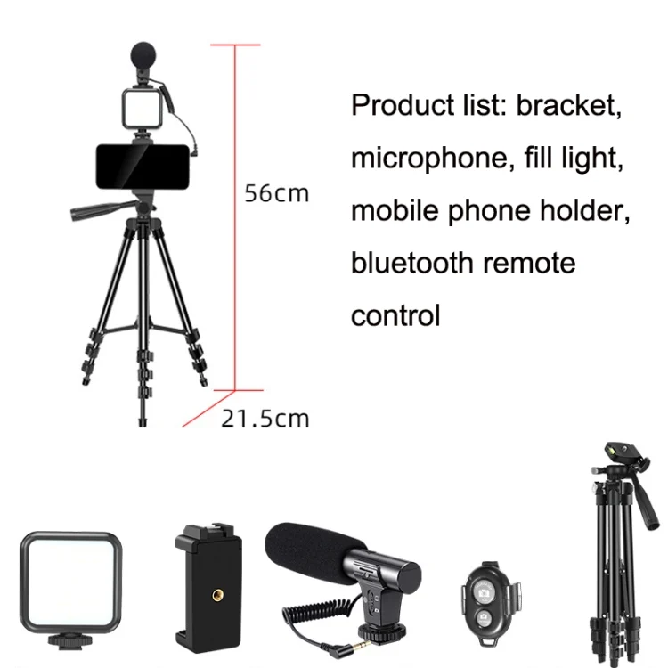 12. Product list: Bracket, microphone, fill light, mobile phone holder, BT remote control