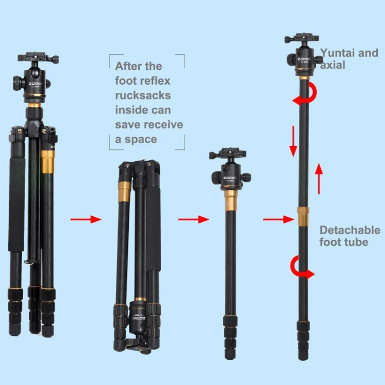 ZOMEI Z688 Portable Professional Travel Magnesium Alloy Material Tripod Monopod with Ball Head for Digital Camera