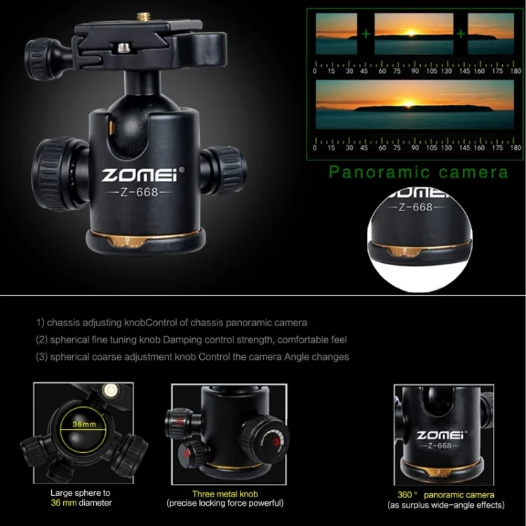 3. The travel tripod with 360 degree horizontal rotation panoramic head allows panoramic shooting, vertical shooting,macro shooting.