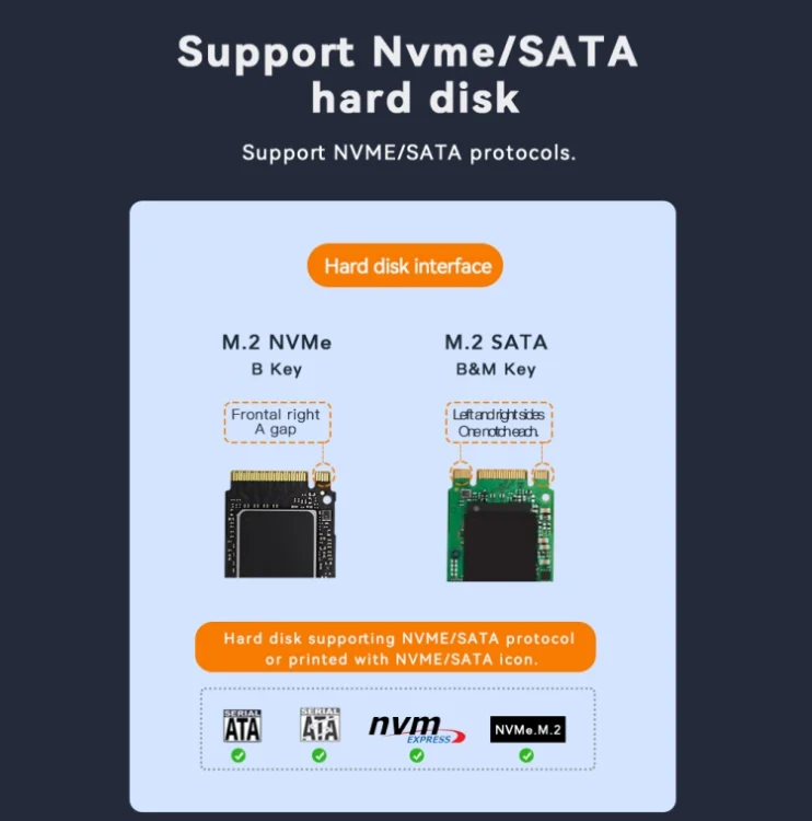 1. Support NVME/SATA protocols