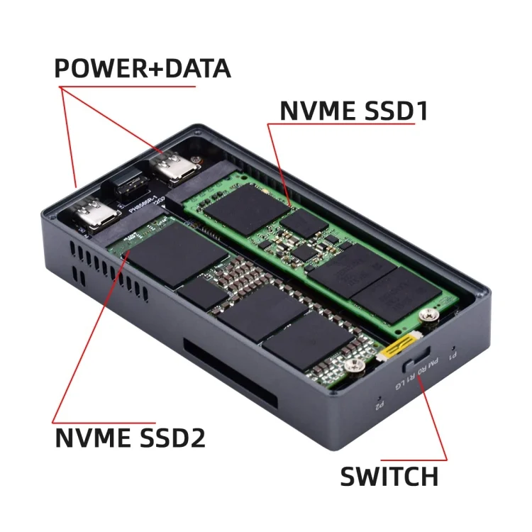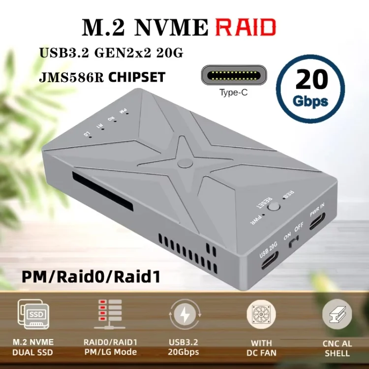 Dual M.2 NVME SSD RAID Array Mobile Hard Drive Enclosure Type-C USB3.2 GEN2x2 20G 586R