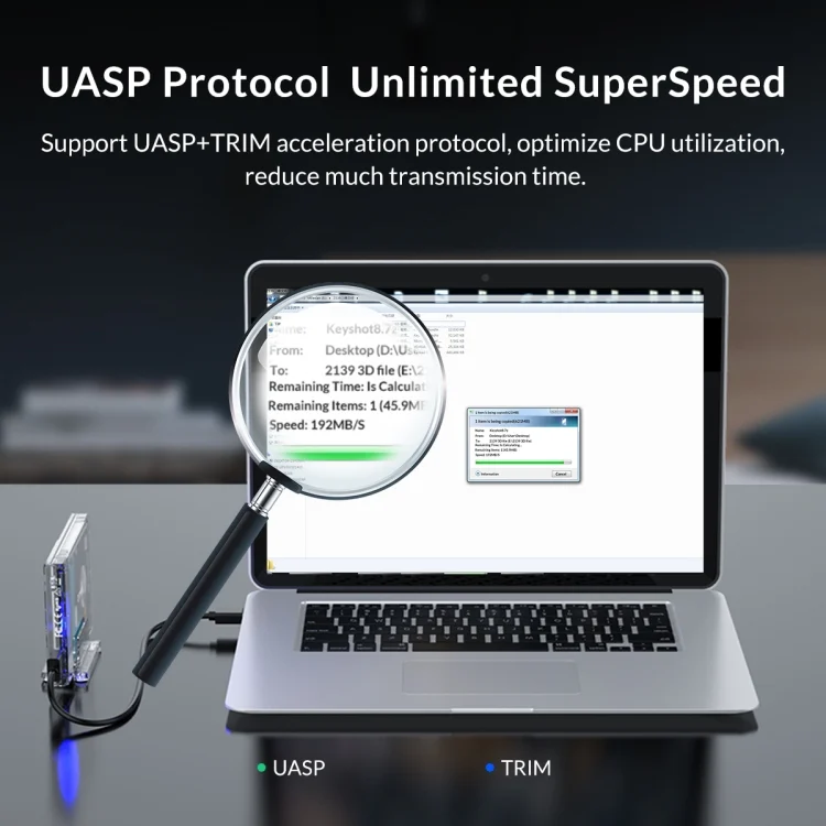 5.Support UASP+TRIM acceleration protocol to optimize Central Processor utilization rate and shorten transmission time