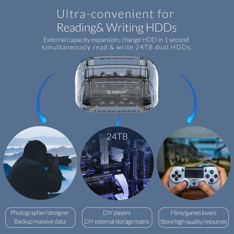 ORICO 6239U3 3.5/2.5inch 2 Bay Transparent USB3.0 Ordinary Reading & Writing Hard Drive Dock
