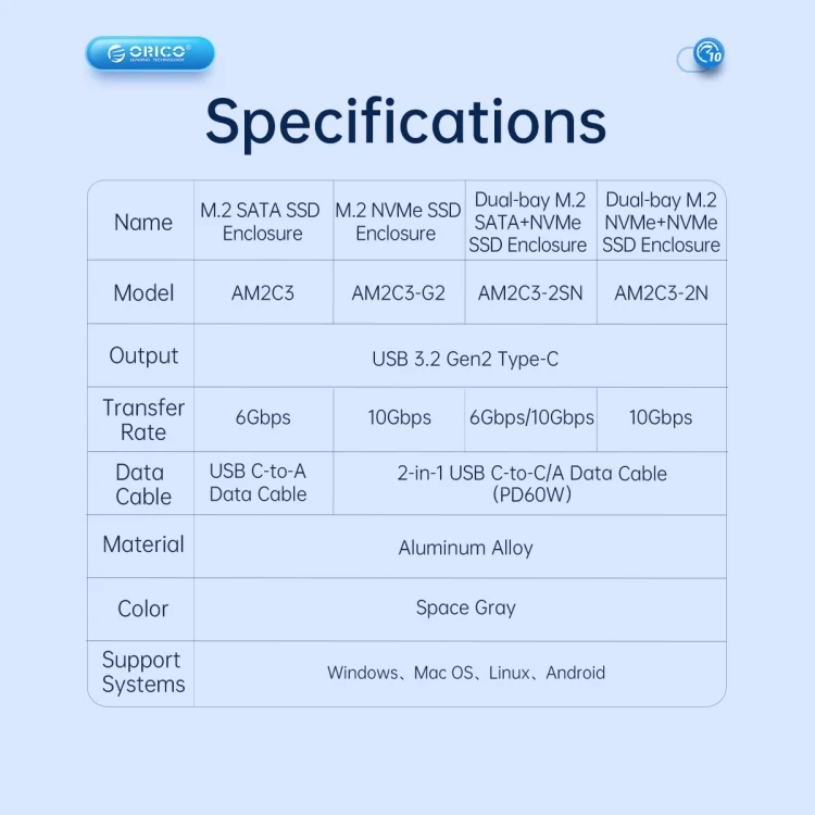 ORICO AM2C3-2N Dual-bay M.2 NVME + NVME SSD Enclosure