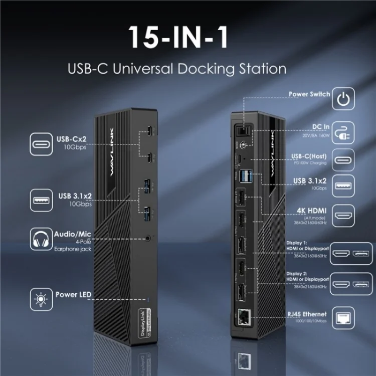 WAVLINK UG69PD25 Pro 100W PD Charging Triple 4K Display Laptop Docking Station
