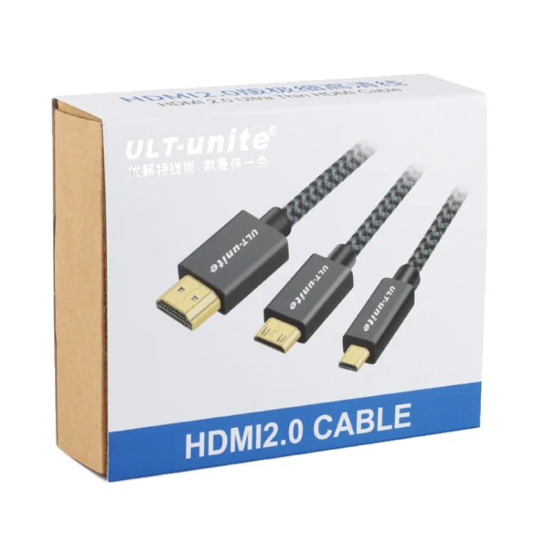 ULT-unite Gold-plated Head HDMI 2.0 Male to Male Nylon Braided Cable, Cable Length: 2m