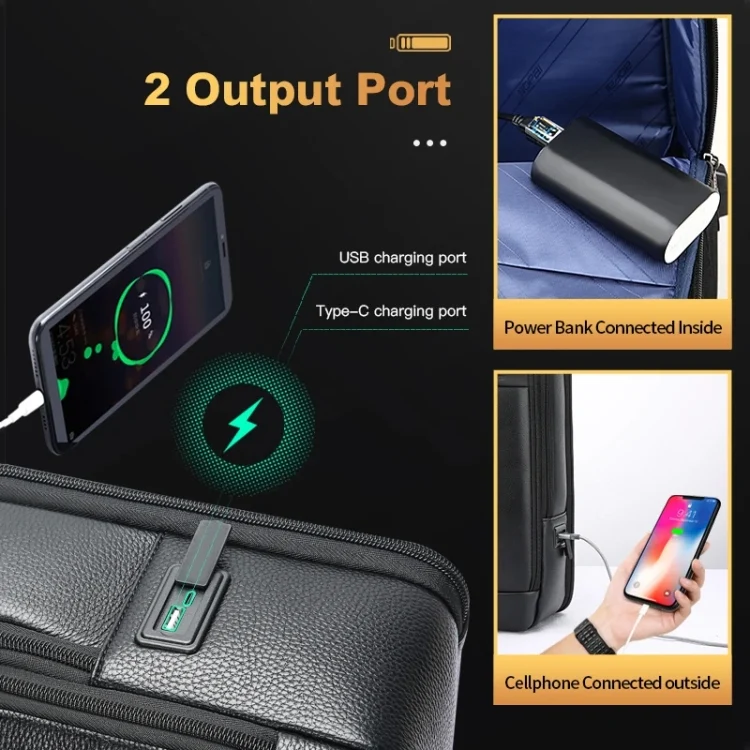 Bopai 61-120761 Large-capacity First-layer Cowhide Business Laptop Backpack With USB+Type-C Port
