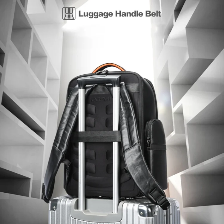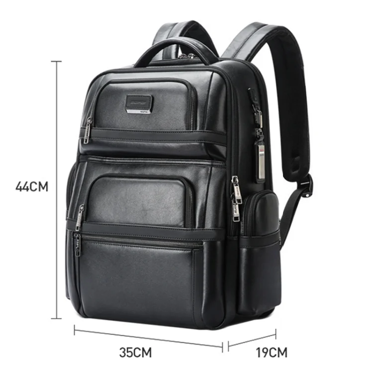 Bopai 61-17311 Large-capacity First-layer Cowhide Laptop Backpack With USB+Type-C Port