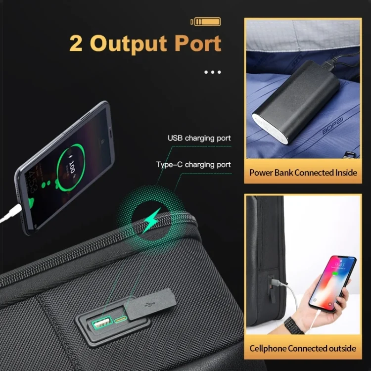Bopai 61-53111 Large-capacity Waterproof Business Laptop Backpack With USB+Type-C Port