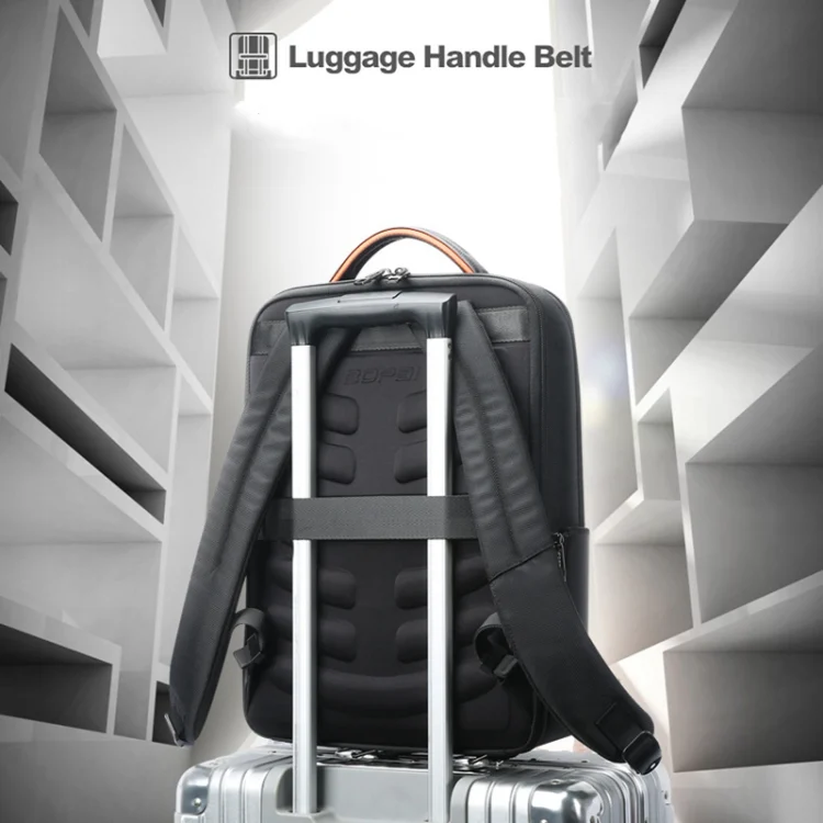 7. Back fixed belt design, the backpack can be fixed on the suitcase pull rod