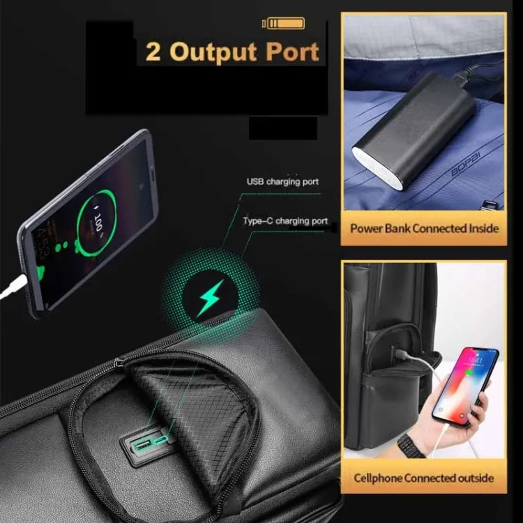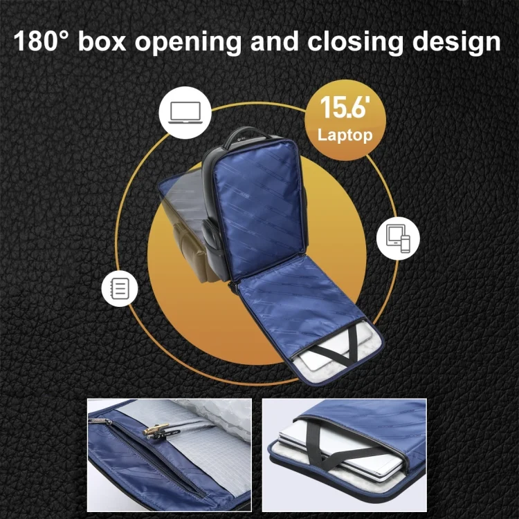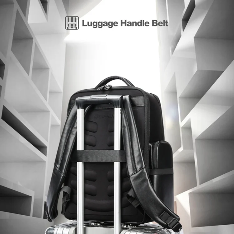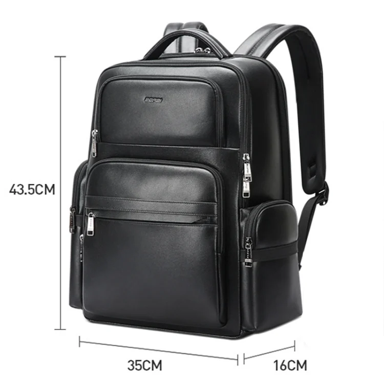 Bopai 61-98611 Large-capacity Waterproof First-layer Cowhide Laptop Backpack With USB+Type-C Port