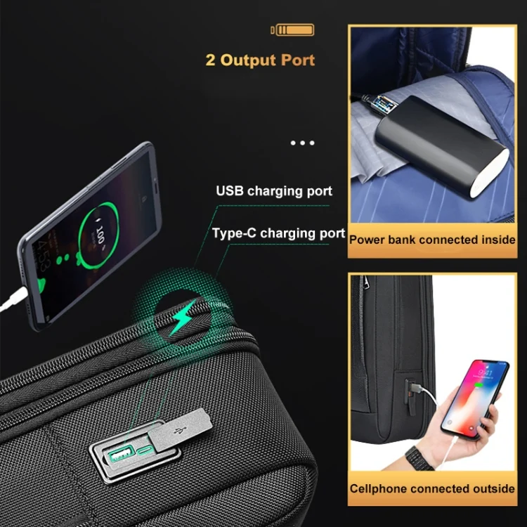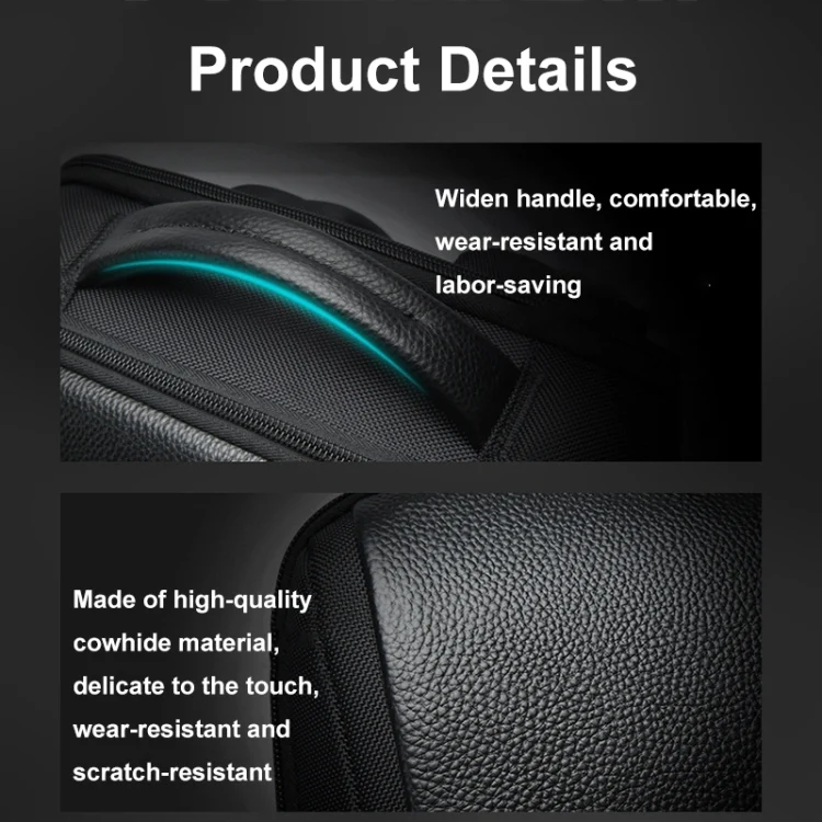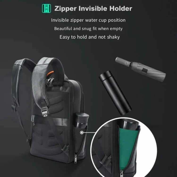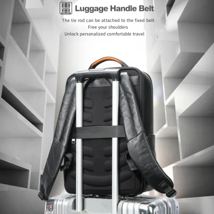 Bopai AL-61-122631B Large Capacity Cowhide Laptop Backpack With USB+Type-C Port