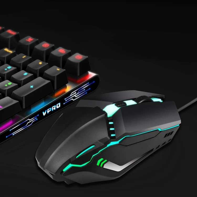 HXSJ S200 USB2.0 1600dpi Adjustable 4-Keys Colorful Glowing Wired Gaming Mouse, Length: 1.5m