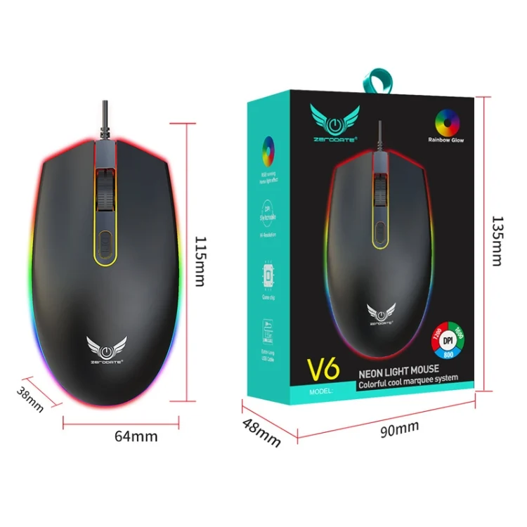 Zerodate V6 4 Keys 1600DPI Game Colorful RGB Marquee USB Luminous Wired Mouse, Cable Length: 1.35m