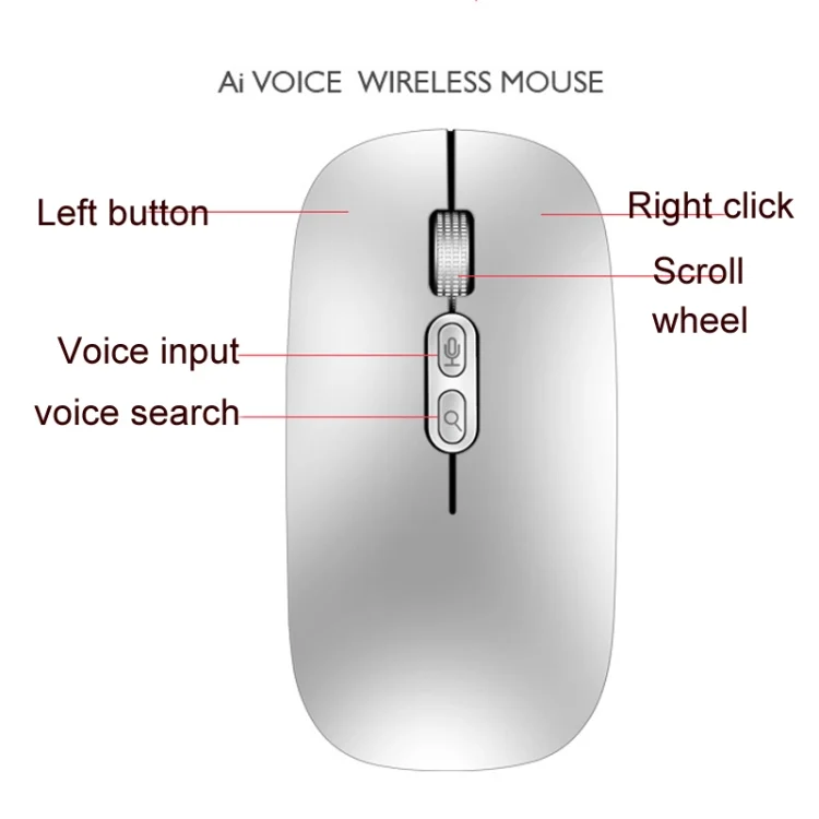 M103 1600DPI 5 Keys 2.4G Wireless Mouse Charging Ai Intelligent Voice Office Mouse, Support 28 Languages