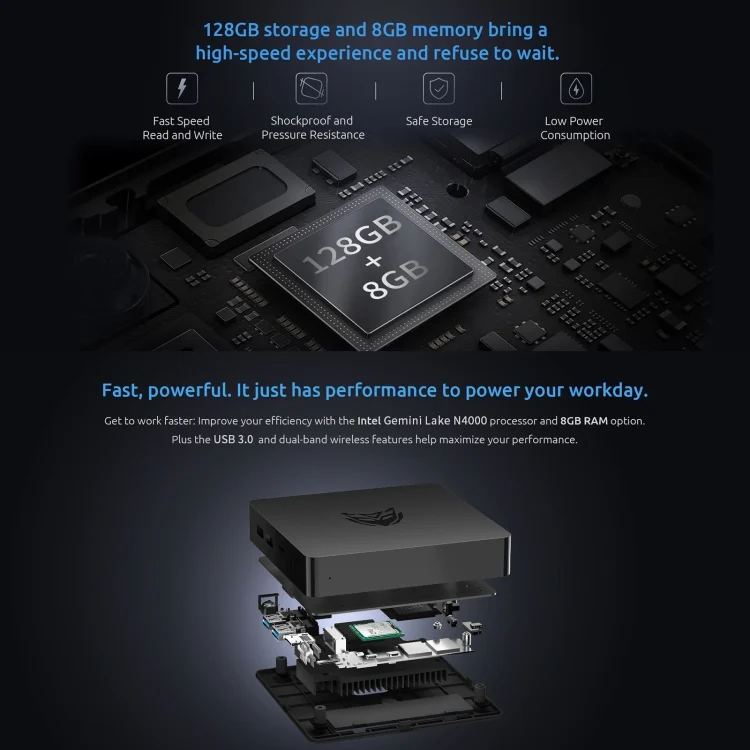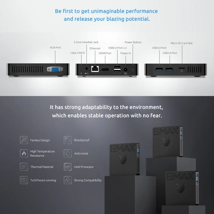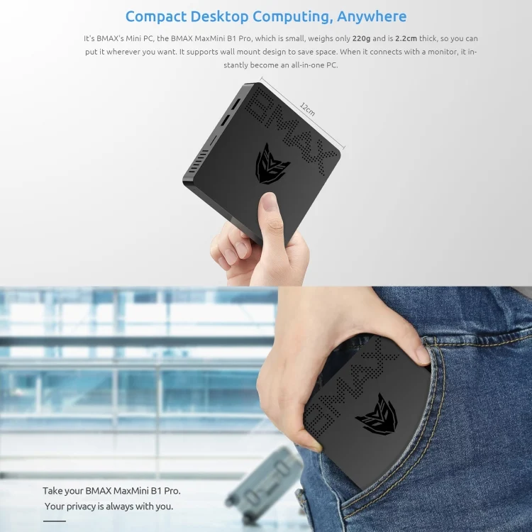 BMAX B1 Pro Windows 10 Mini PC, Intel Celeron N4000, Support HDMI / VGA / RJ45