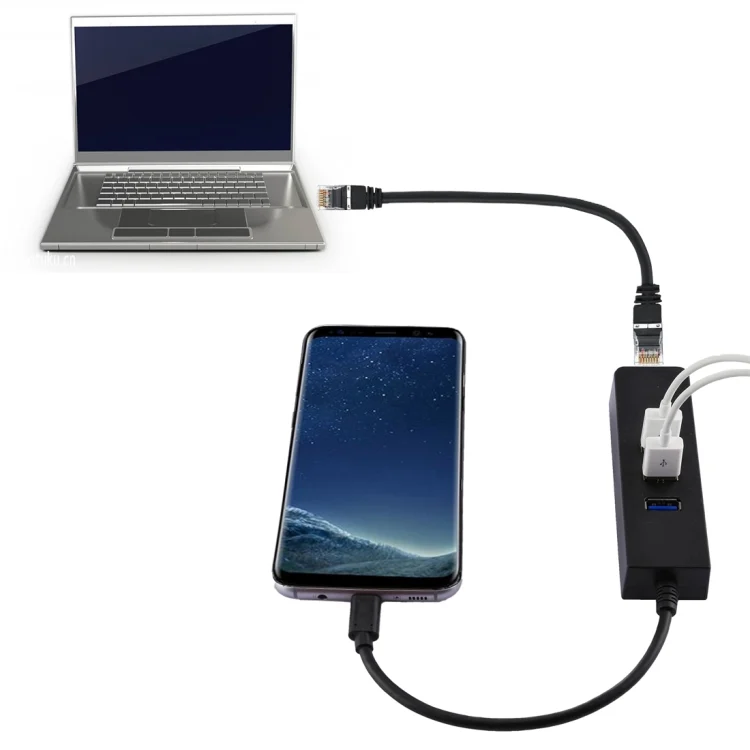 USB-C / Type-C to 3 USB 3.0 Ports HUB + RJ45 High Speed Gigabit Ethernet Adapter Multi-function LAN Adapter
