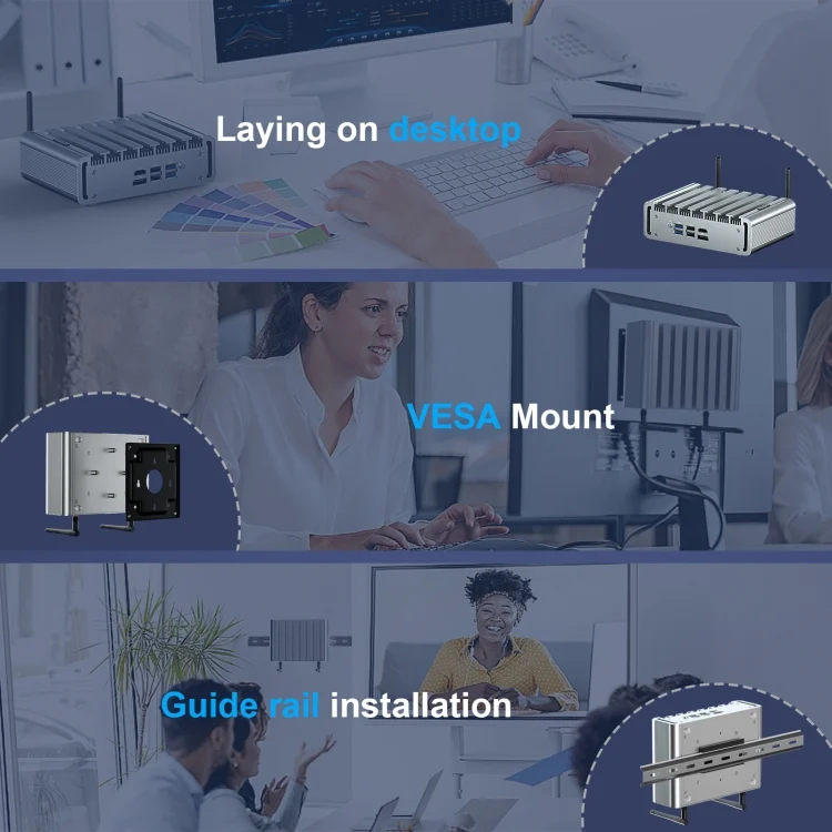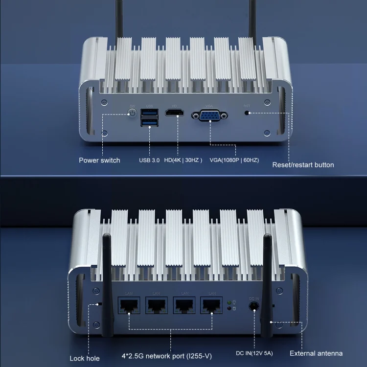 3. Fanless all-aluminum alloy exterior design, heat sink heat conduction chassis cooling, compact body