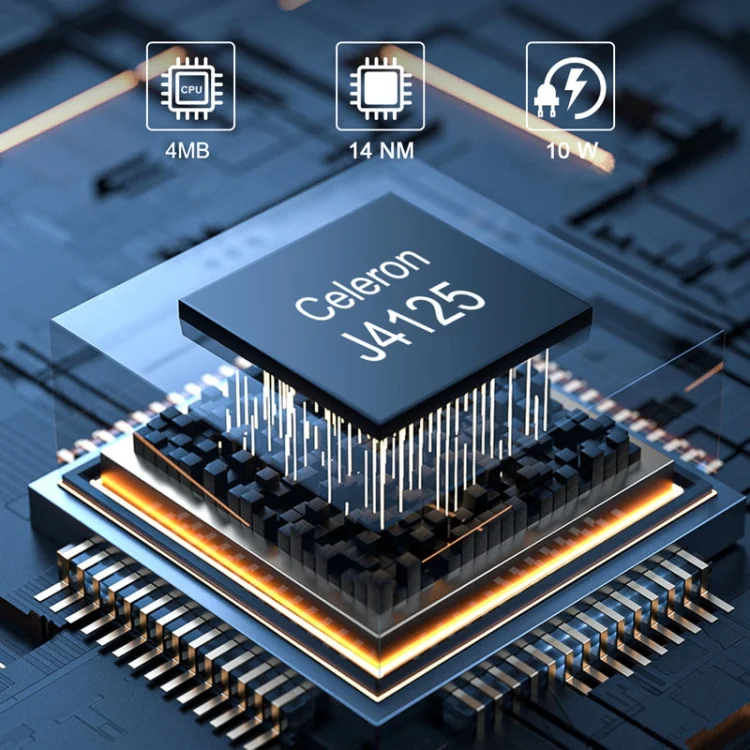 1. CPU: Intel Celeron J4125-4L (4M cache, 4 cores and 4 threads, base frequency 2.0GHz, max. 2.7GHz)
