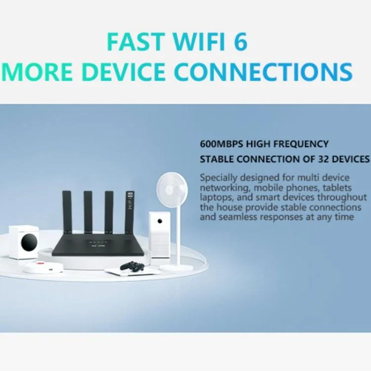 1.Wi-Fi 6 Technology:Delivers blazing-fast wireless speeds up to 600Mbps, enabling seamless streaming and internet access across multiple devices.