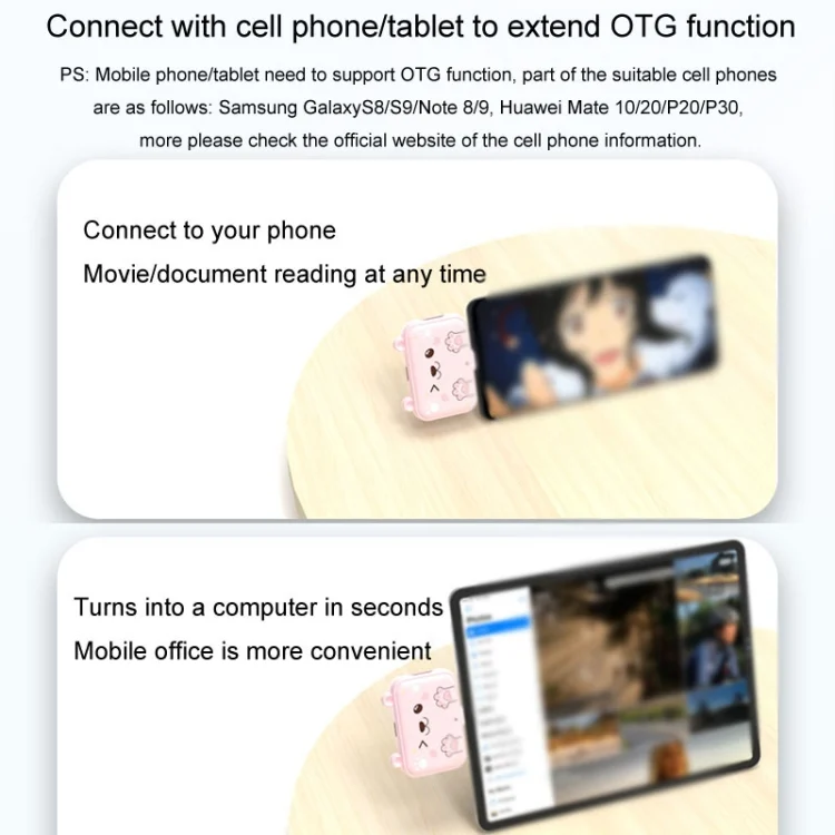 5. Connect to mobile phone/tablet, expand OTG function, connect to cell phone, read movies/documents at any time, turn into a computer in a second, mobile office is more convenient