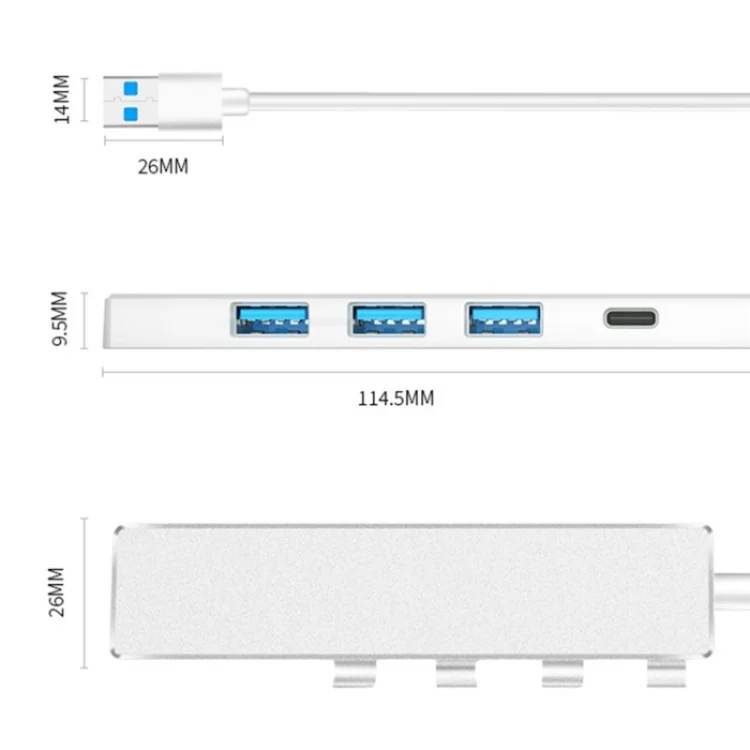 1. This is a USB hub converting to 1 x Type-C female + USB 3.0 + 3 x USB 2.0 ports, solving the problem of insufficient USB interfaces on laptops or computers