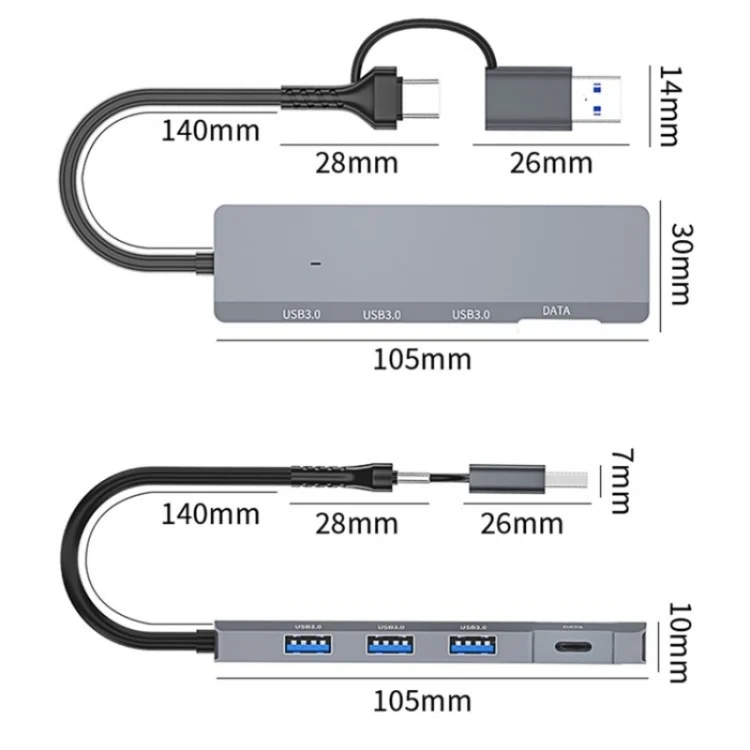 ADS-309D USB / Type-C to 3 x USB 3.0 + Type-C Data Port Expansion Hub Adapter