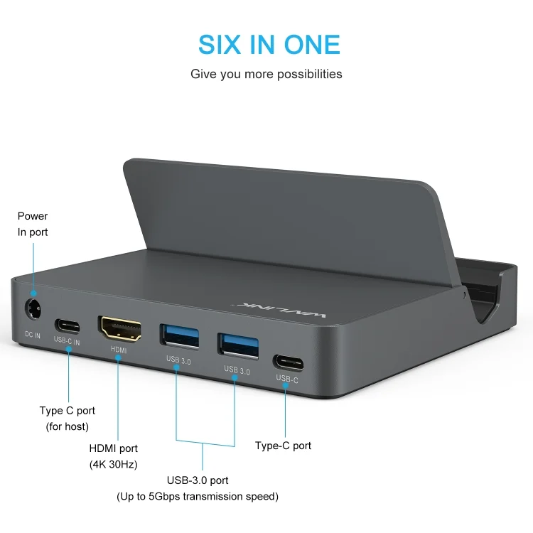 WAVLINK WL-UHP3D01 Portable Type-C Cell Phone Docking Station Multi-Port USB HUB Adapter