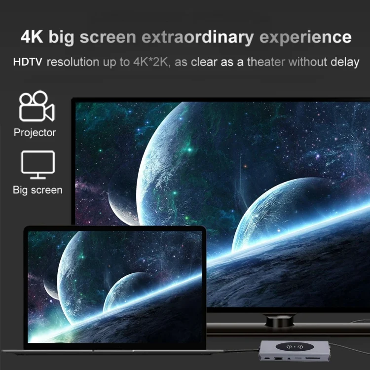 1093 13 in 1 USB HUB Type-C Docking Station with Wireless Charger Function