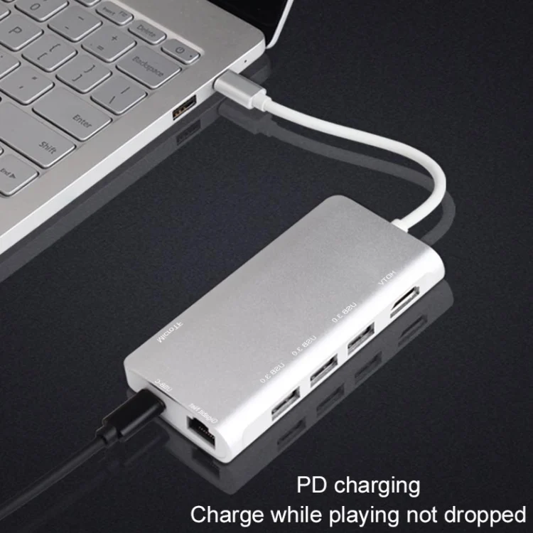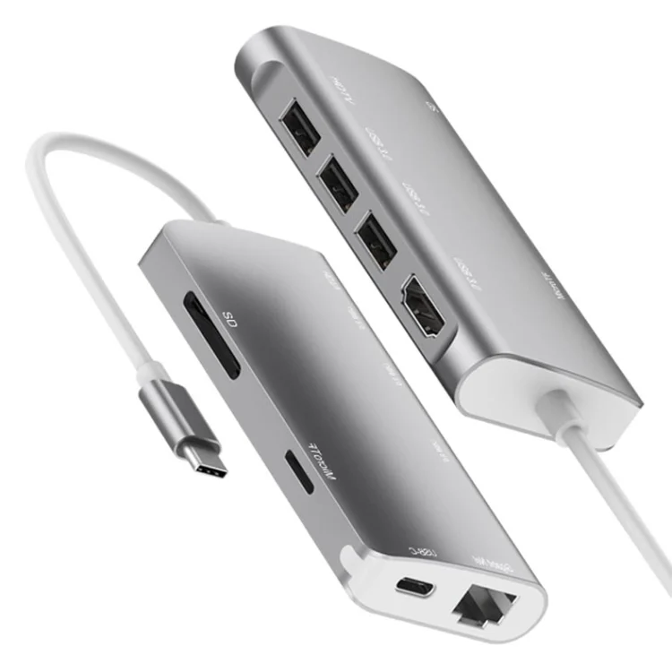 9591C 8 In 1 USB 3.0 x3 + SD / TF Card + HDMI + RJ45 + Type-C / USB-C (PD) Multi-function HUB Converter Dock Station
