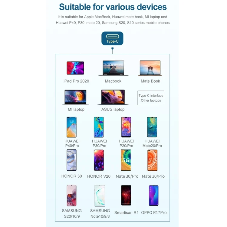5. Reversible USB-C connector, this user-friendly design allows you to plug in USB Type-C compatible devices (compatible with Thunderbolt 3) without worrying about the direction of the port