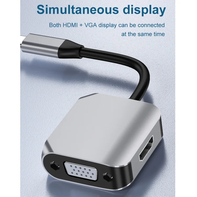 HW-6002 2 In 1 Type-C / USB-C to HDMI + VGA Adapter Converter