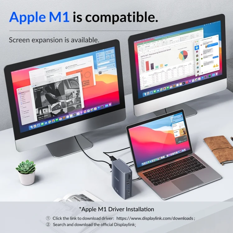 1. Can be connected to 2 external displays at the same time, supporting mirroring/expansion mode