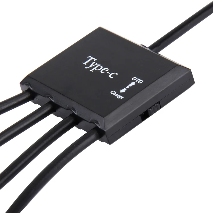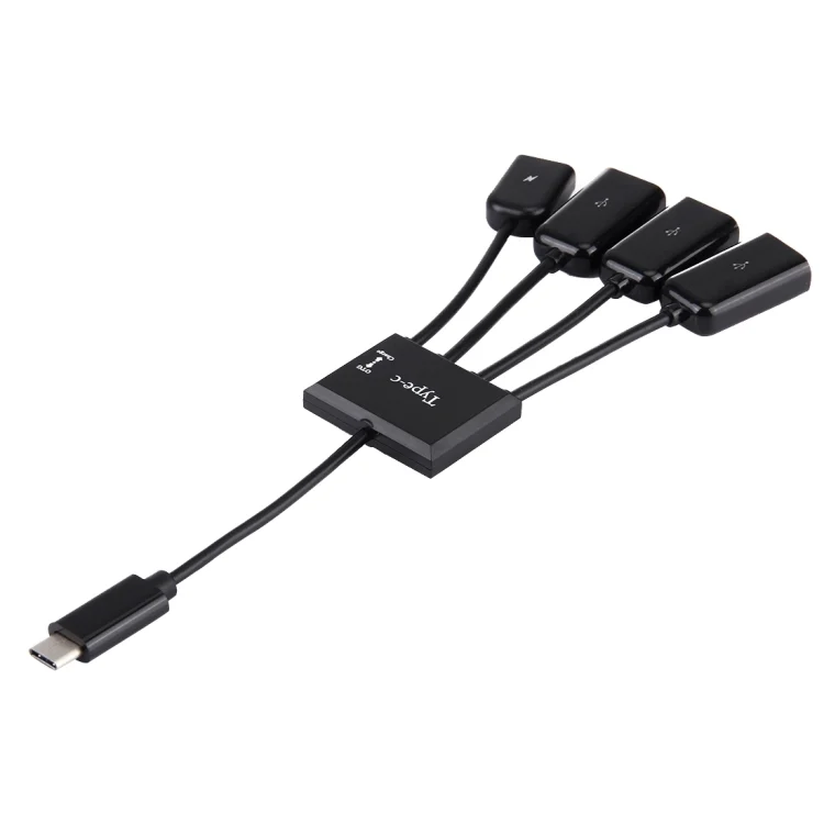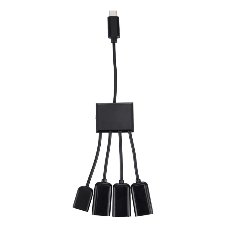 Portable 4 in 1 USB-C / Type-C to 3 Ports USB 2.0 OTG HUB Cable with Micro USB Power Supply