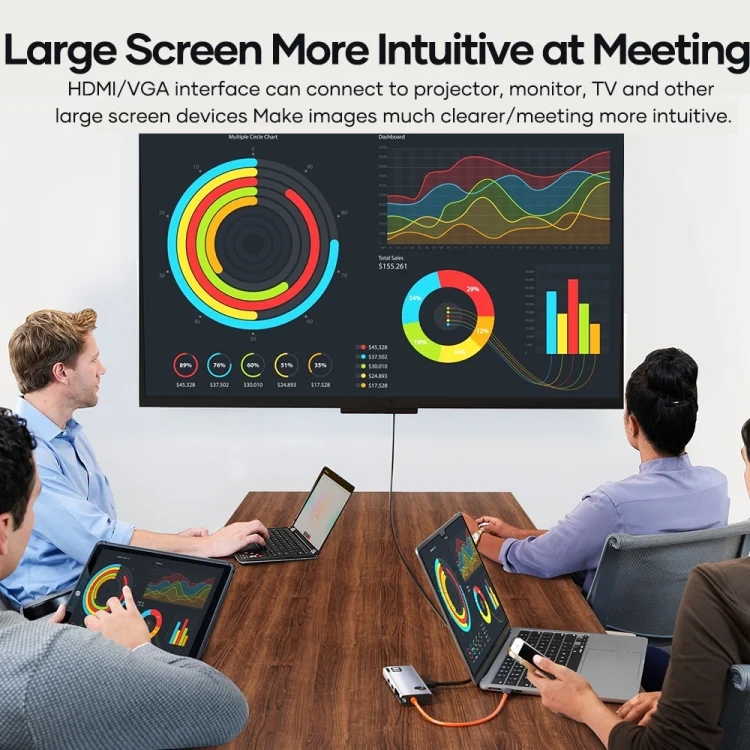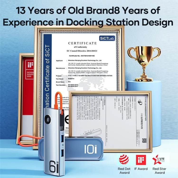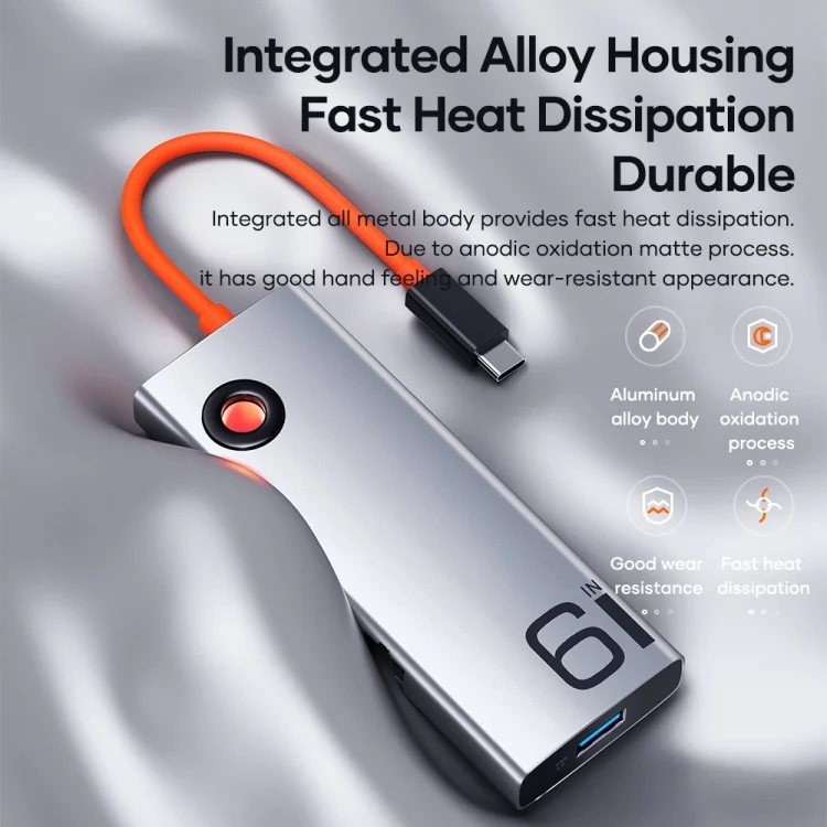2. 6 in 1 docking station, get rid of troubles bought by single interface of notebook, realize multiple interface functions