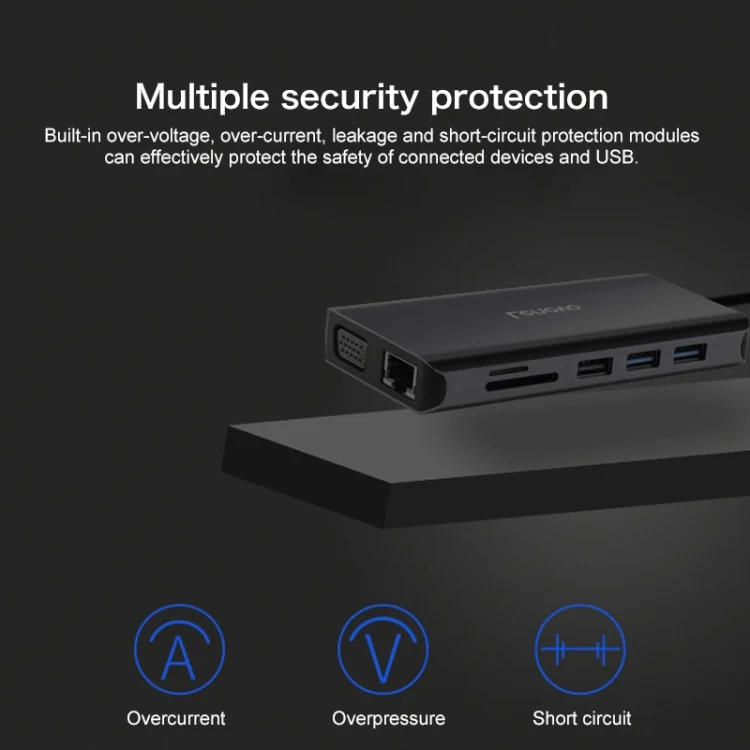 4. Built-in over-voltage, over-current, leakage and short-circuit protection modules can effectively protect the safety of the connected equipment and USB