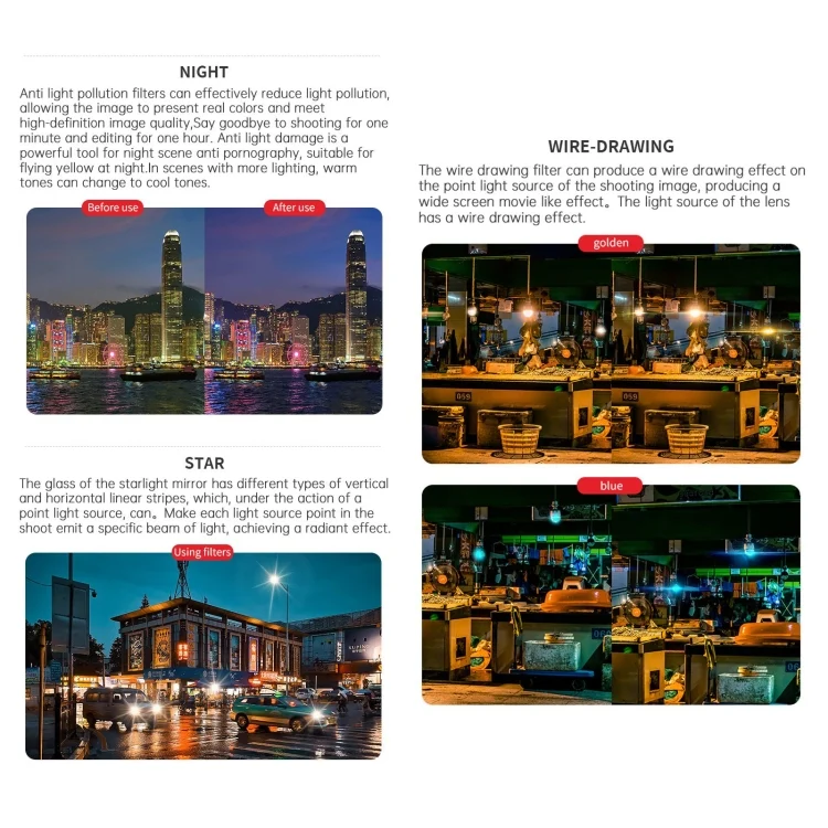 6. NIGHT Anti-light Pollution Filter: It can effectively reduce light pollution and make the picture show real color.
