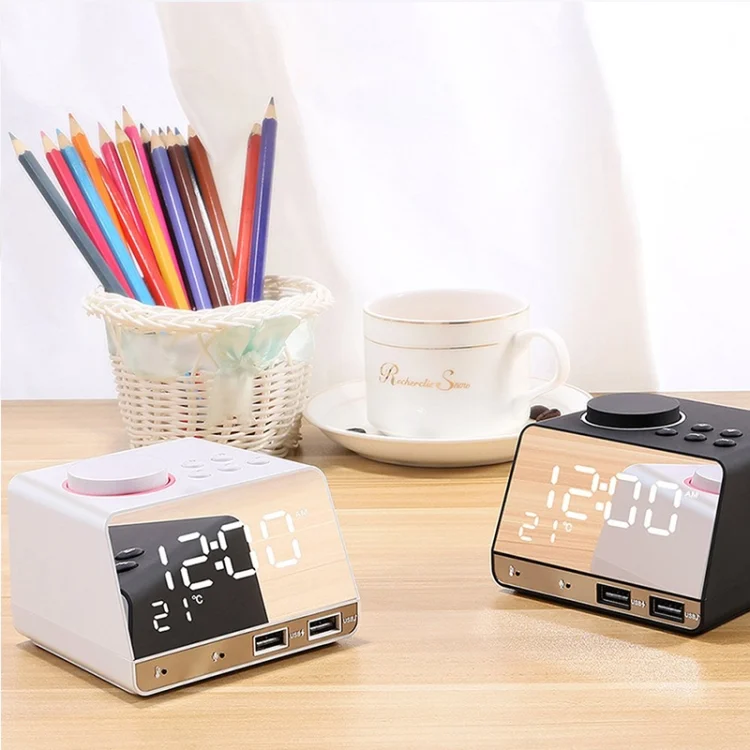 K11 Bluetooth Alarm Clock Speaker Creative Digital Music Clock Display Radio with Dual USB Interface, Support U Disk / TF Card / FM / AUX, US Plug