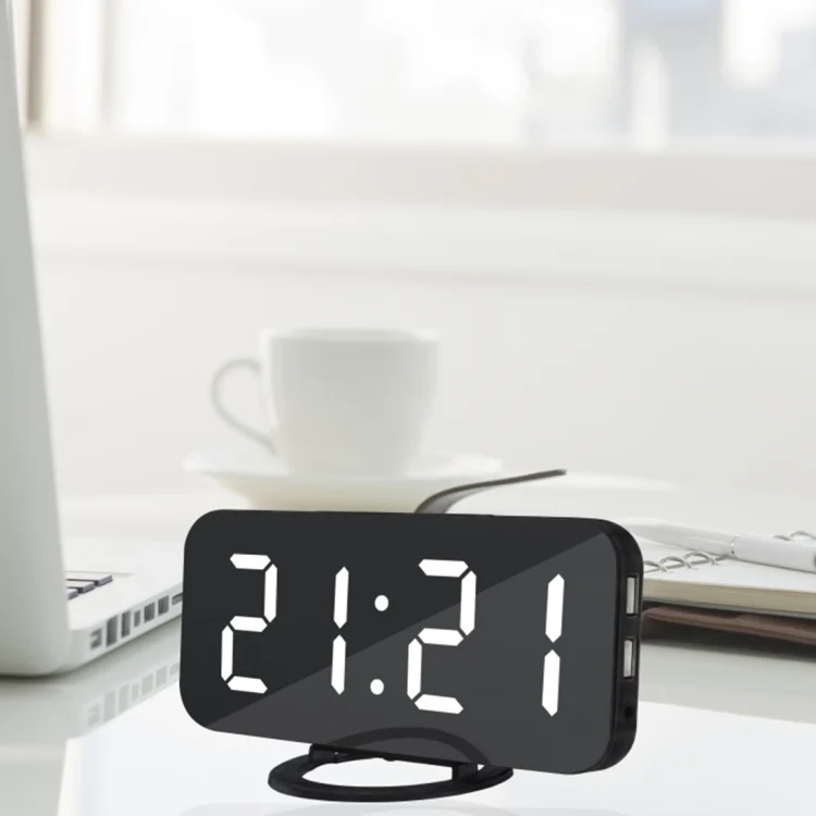Multifunction Creative Mirror Reflective LED Display Alarm Clock with Snooze Function & 2 USB Charge Port